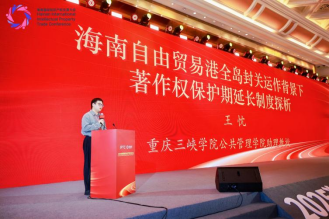我院教师王忱在“自贸港(区)知识产权保护的理论创新与制度优化”单元做《海南自由贸易港全岛封关运作背景下著作权保护期延长制度探析》的主题发言。发言指出海南自由贸易港全岛封关运作要求知识产权保护对标国际最高水平的开放形态。延长海南自由贸易港著作权保护期,在战略上可增强外资集聚,打造制度高地;在经济上可提升我国作品国际竞争力,培育本土文创产业;在文化上可保障主体代际利益公平,保护数字环境下作品的长期价值。现阶段先对视听作品的著作权保护期延长进行试点,再逐步探索建立与海南定位相适应的著作权保护期延长制度。
